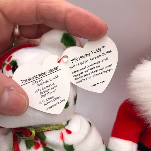 1998 Trio of Christmas Beanie Babies Teddy/ Santa/ Penguin /b