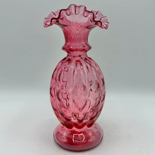 Vintage Fenton Cranberry Diamond Optic Ruffled Art Glass Vase EUC /cb