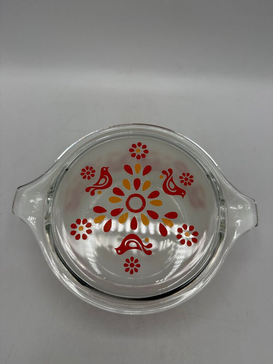 VTG Pyrex Friendship Pattern Covered Casserole 1 Qt Dish /rw