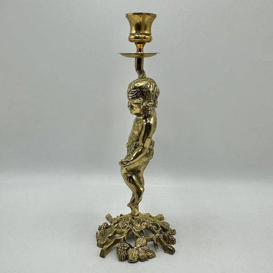 Vintage Brass Cherub Figural Candlestick Holder-11”Taper Candle Holder /cb