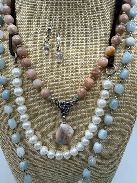 Bel Monili Vintage Reborn Set of 3 Fashion Necklaces 1 Dangle Earring /ro