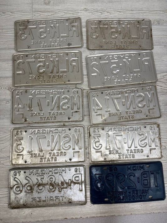VTG Lot of 10 Michigan License Plate 1965 -1979 /ro