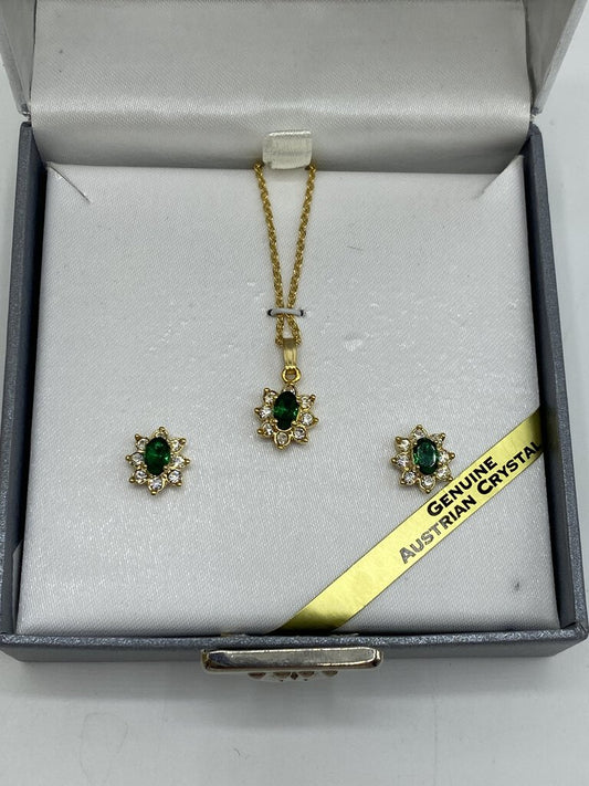 Worthington Emerald Green Austrian Crystal Gold Tone Necklace Earring Gift Box /ro