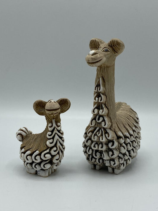 Artesania Rinconada Uruguay Clay Art Sculpture Pottery Alpaca Llama Figurine Momma & Baby /ro