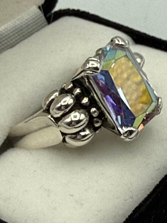 Stunning Emerald Cut Mystic Topaz Sterling Silver Ring Size 9.25 /ro