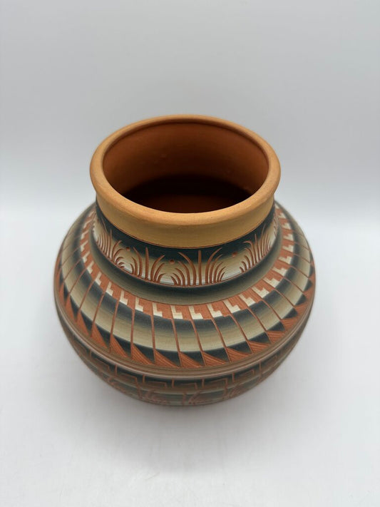 Native American Navajo Etched Clay Pottery 7” EUC /roh