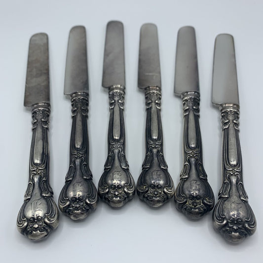Antique Gorham Silver Co. “Chantilly” Sterling Silver French Hollow Knives with Bolsters Set/6 /hg