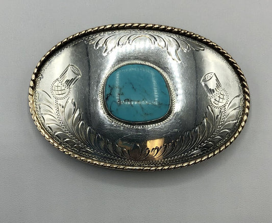 Vintage Comstock Silversmiths Silver & Turquoise Western Belt Buckle /b