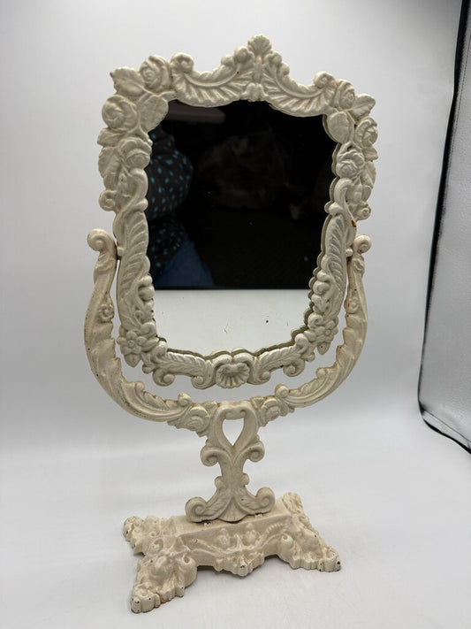Victorian Cast Iron Pedestal Framed Vanity Mirror 16” Tall /rw