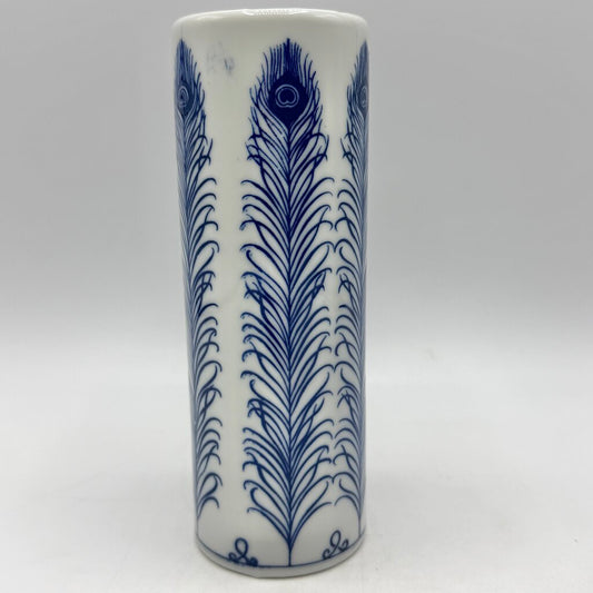 Vintage Takahashi San Francisco Blue & White Peacock Feather 6 1/2” Bud Vase /cb