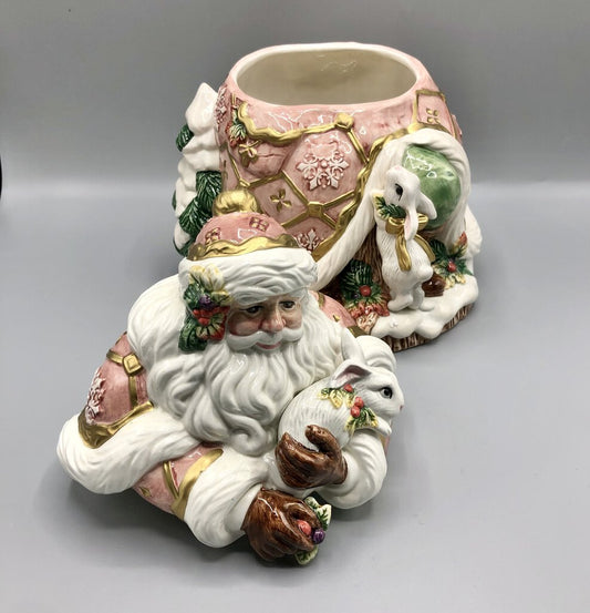 1996 Fitz & Floyd Snowy Woods Santa Cookie Jar /b