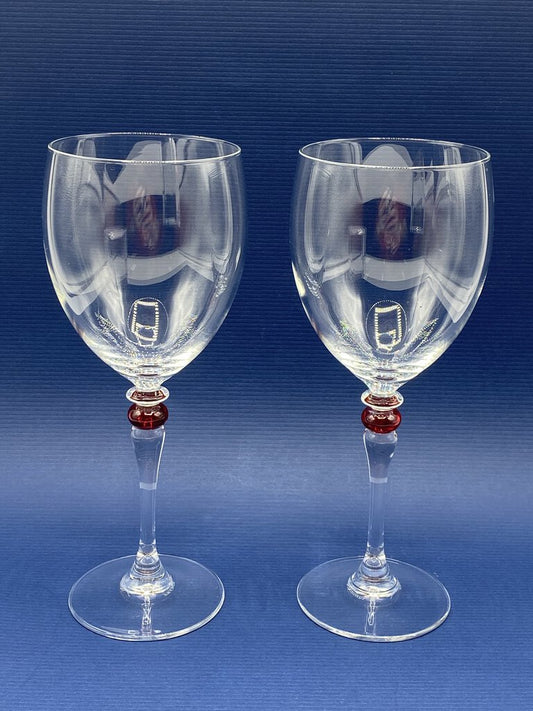 2 - Vintage Luminarc Wine Glasses w/Red Ball Stem made in France /rw