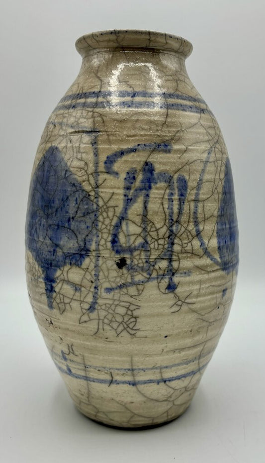 Vintage Pottery Vase Blue & Grey /j