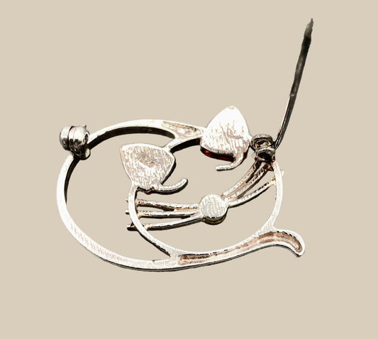 Sterling Silver & Baltic Honey Amber Sleepy Cat Brooch /b