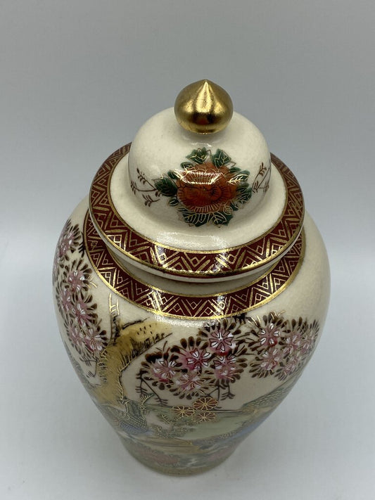 Vintage Andrea by Sadek Vase/Urn/Pot w/Lid Oriental Peacock 8” /ro