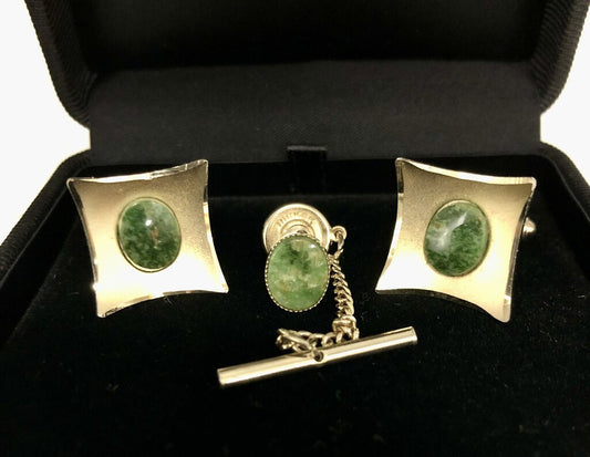 1950’s JML Green Jade 12K GF Cufflink & Tie Tack Set /b
