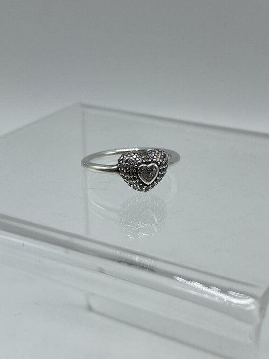 Pandora Halo Band .925 Sterling Ring Raise Heart CZ Setting SZ 7 in box /ro