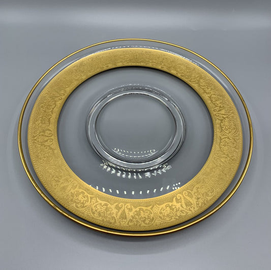 Vintage Glastonbury-Lotus Georgian Gold Cupped Torte Plate, Round Platter /hg