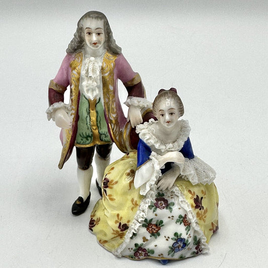 Vintage Volkstedt Miniature 18th Century Style Figurines w/Lace Accents Made In Germany /cb