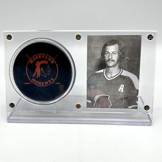Muskegon Hockey Memorabilia Murray Flagel Mohawks Puck & Hockey History and Heroes Book /cb