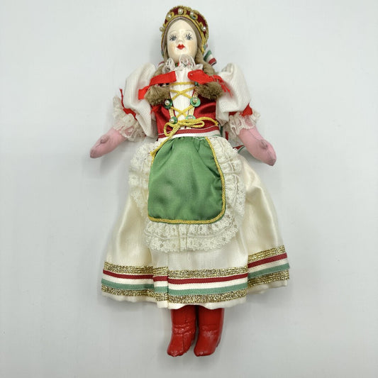 Vintage Hungarian Souvenir Doll Couple Porcelain Heads Cloth Bodies /cb