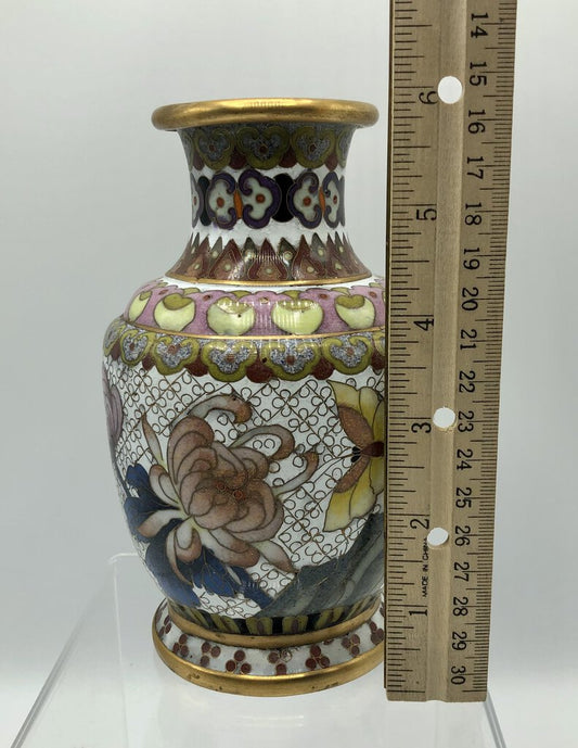 6” Floral Cloisonné Brass Vase /b