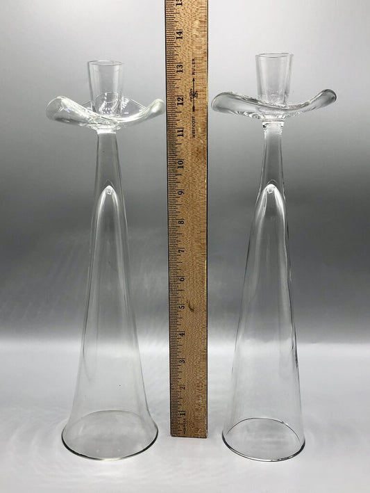 Tall Impressive Pair Blown Glass Candlesticks Candle Holders /b