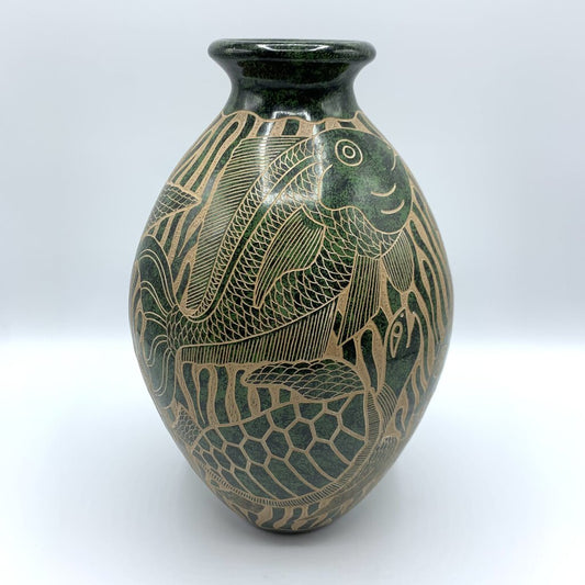Gutierrez Nicaraguan Etched Art Pottery Vase /hg