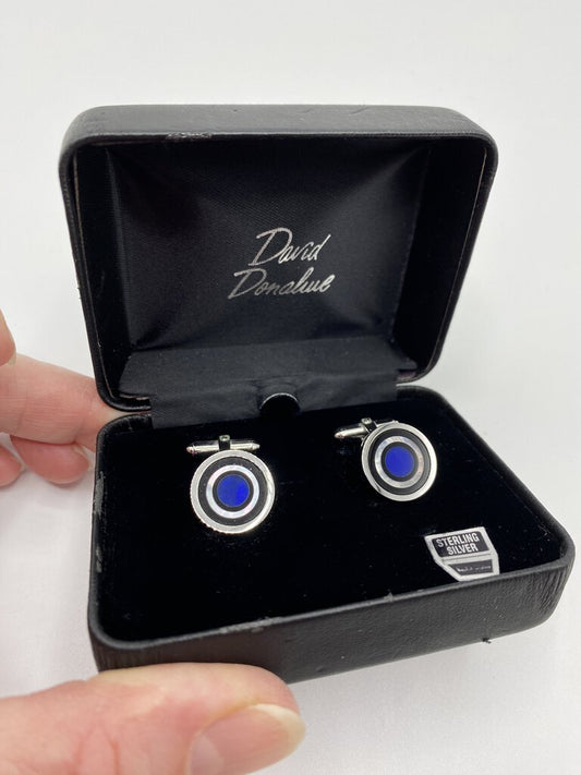 David Donahue Sterling Silver Cuff Links Blue Center with Mother of Pearl Accents /ro