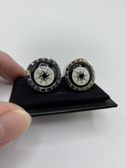 Tateossian Working Compass Silver Cufflinks London /ro