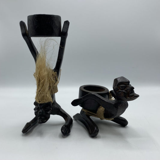 Pair of Handcarved Tiki Man Candleholders for Pillar Candles /bh