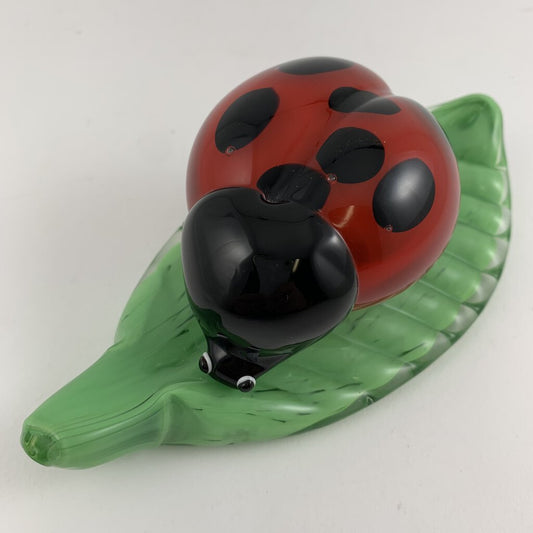 Blown Glass Murano-Style Lady Bug on a Leaf Figurine /hg