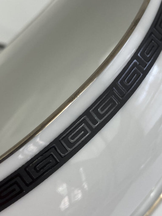 Noritake Horizon Black Band Greek Key Patten Gravy Boat w/Underplate /r