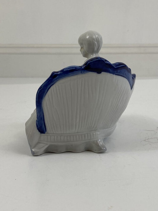 Victorian Lady on a Settee Porcelain Blue & White Figurine 7”x5”x6” /r