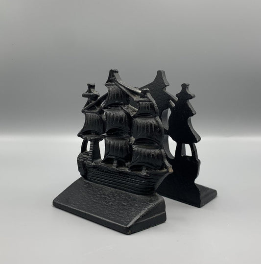 Vintage Cast Iron Galleon Ship Bookends /hg