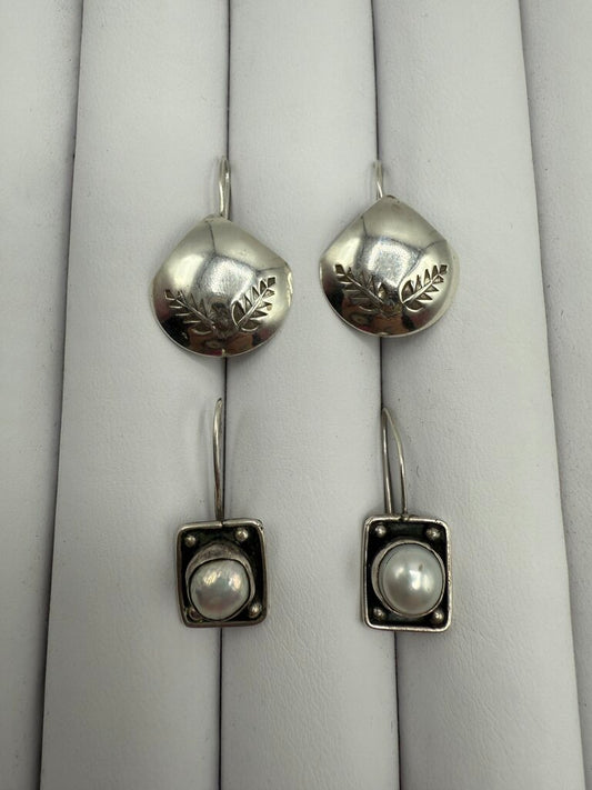 Set of 2 Pairs Pierce Dangle Sterling Silver Earrings /ro