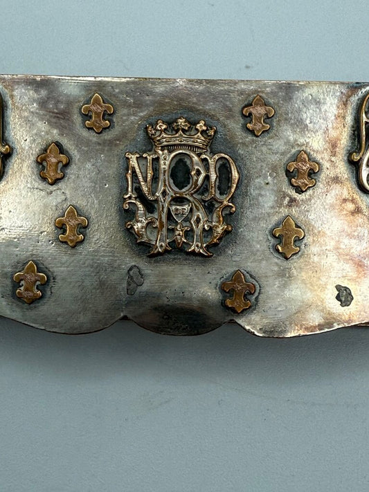 VTG Silver Plate Postage Stamp Box w/ND Crest /ro