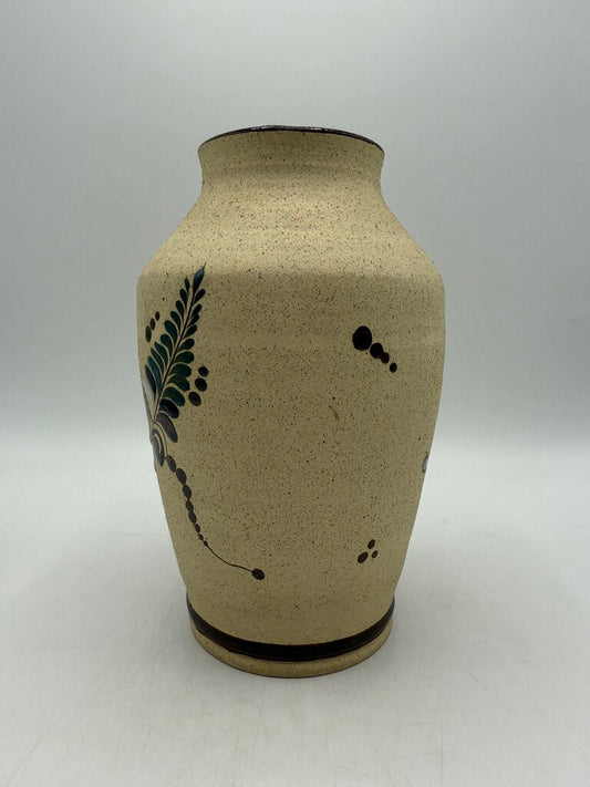 Tonala Mexico Pottery Vase Bird/Floral 8” tall /ro