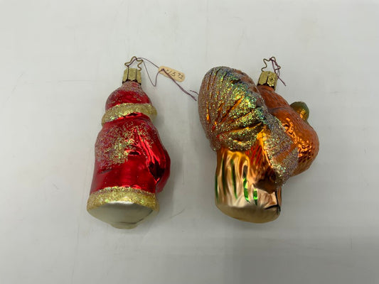 Old World Christmas Ornaments Thanksgiving Turkey & Santa /rw
