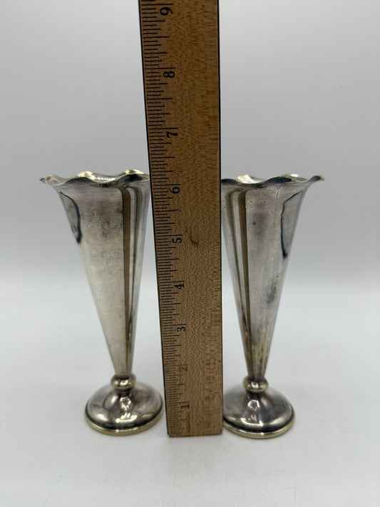 VTG set of 2 EPNS Trumpet Bud Vase 6.25” tall /ro