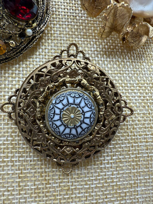 Vintage JHP Rhodium Plated Cross Pendant Necklace /b