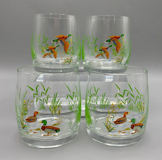 Set of 4 Bohemia Czech Mallard Duck, Marsh, Whiskey Glasses /j