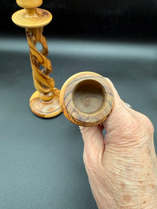 VTG Olive Wood Turned Candlestick Holders 9” tall Set of 2 /roh
