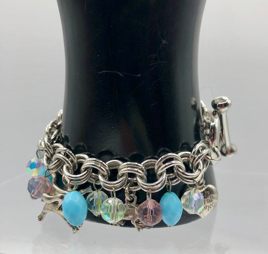 Glass Bead Bracelet & 10 Sterling Silver Charms 7” /ro