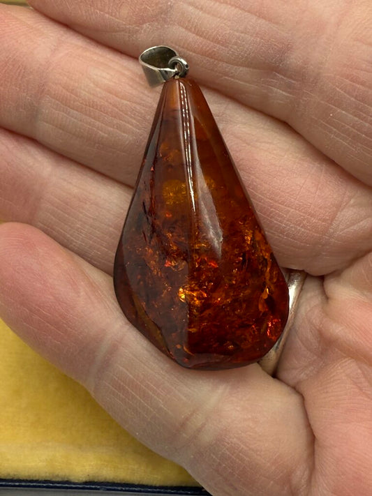Amber Gemstone Pendant Silver Bail 1.5” x 1” /ro