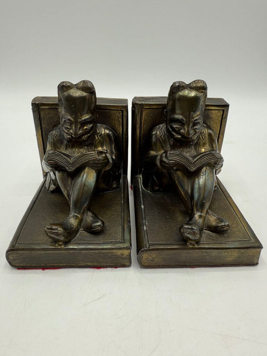 Antique TK Metal Bronze/Brass Book Ends Reading /rw