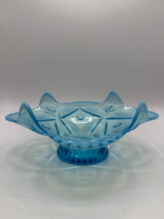 Antique Dugan Glass Block & Wheel Blue Opalescent Dish /ro