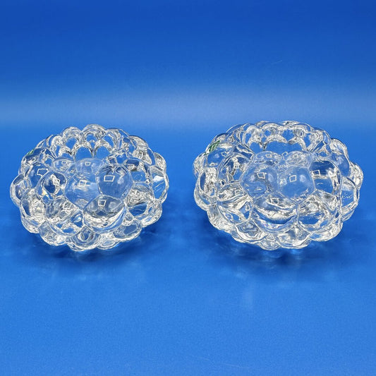 Vintage Pair Of Orrefors Crystal Hallon Raspberry Votive Candle Holders Sweden /cb