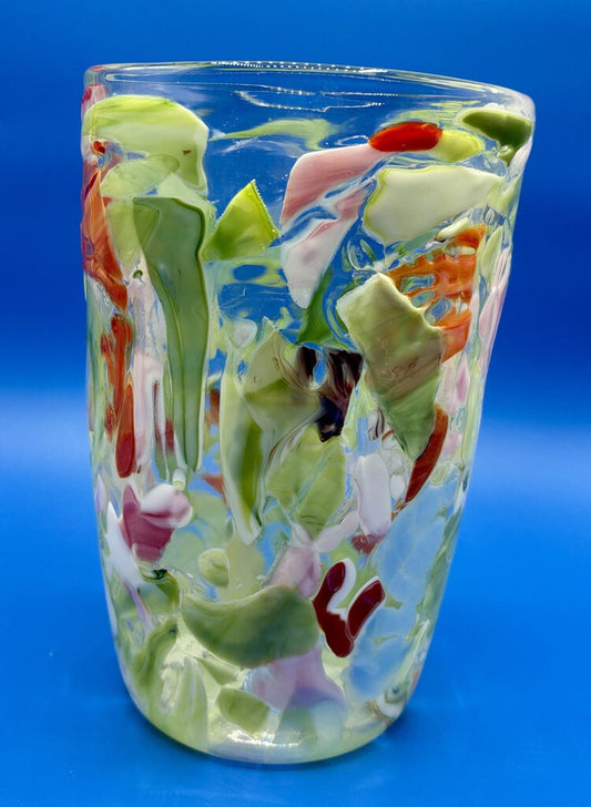 Hand Blown Fused Glass Art Vase /j
