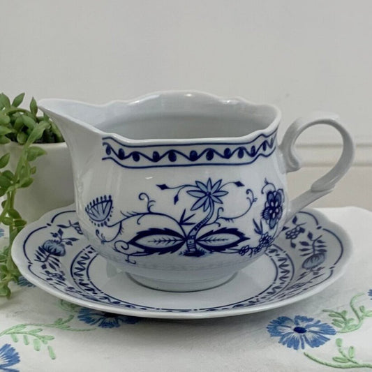 Zwiebelmuster Blue Onion by Kahla Gravy Boat and Underplate Blueware Made in GDR /cb